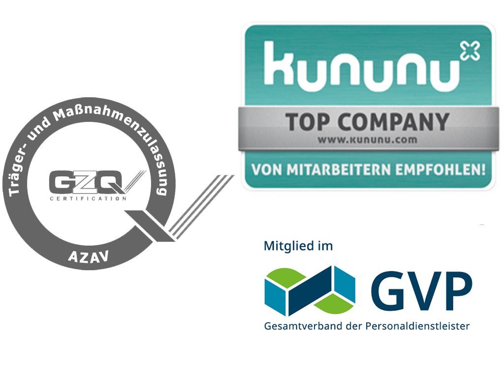 Die PersonaPlan GmbH ist tarifgebundenes Mitglied im Gesamtverband der Personaldienstleister (GVP). Im Bereich Bildung und Integration sichern wir durch unsere AZAV-Zertifizierung eine gleichbleibend hohe Qualität und Zuverlässigkeit unserer Dienstleistungen.